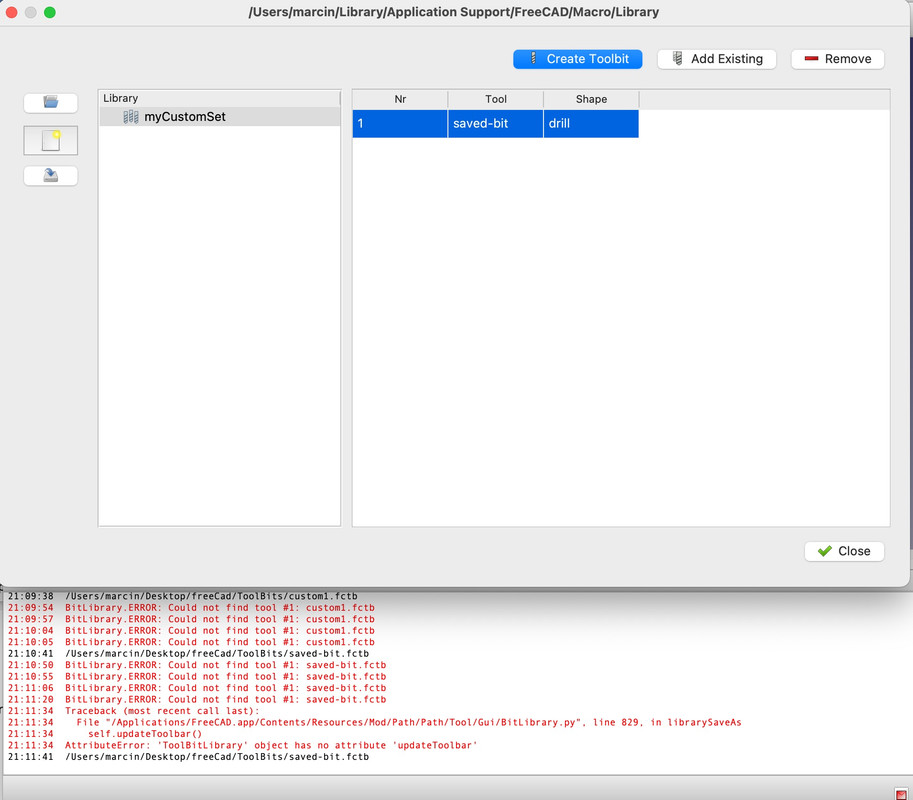 Tool Selector loads Library Name but nothing else. I intentionally saved all tools on newly created desktop folder. (Due to writing permissions). Also it throws some errors. I dunno why.