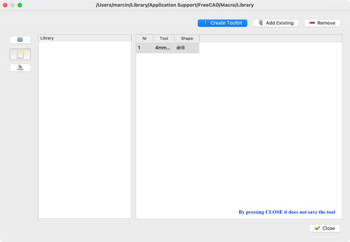 The screen shot does not show a tool table in the left pane ( Library )